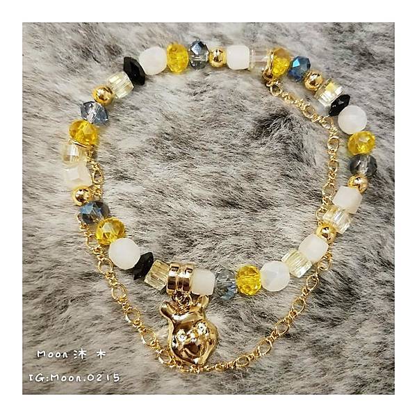 且維尼手鍊是以黃色系為主與耳飾的金色搭配又更加一致