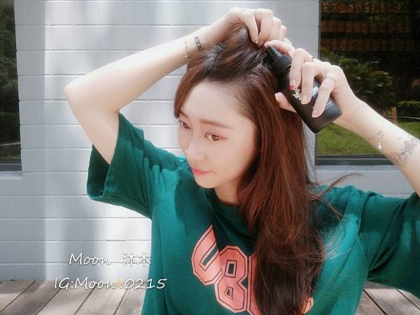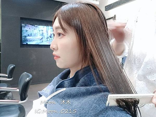 並使用排梳讓護髮品可以牢牢附著時髮絲上
