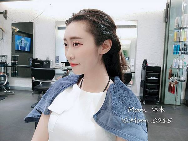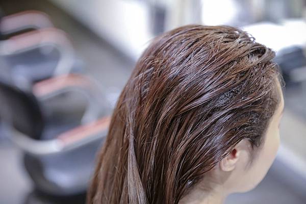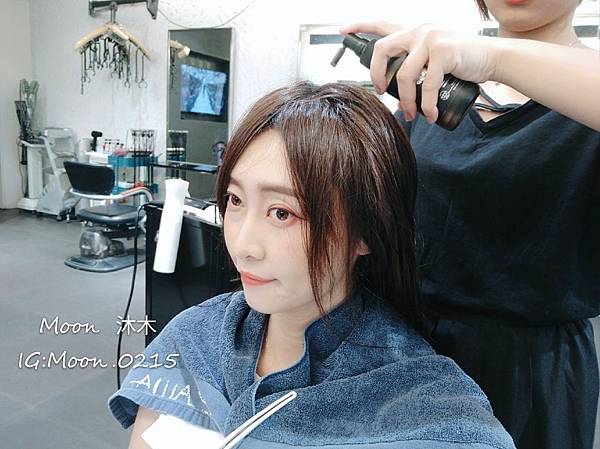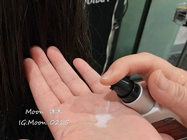 吹髮前店長設計師Jenny幫我先抹上可以降低熱風傷害髮絲.
