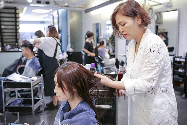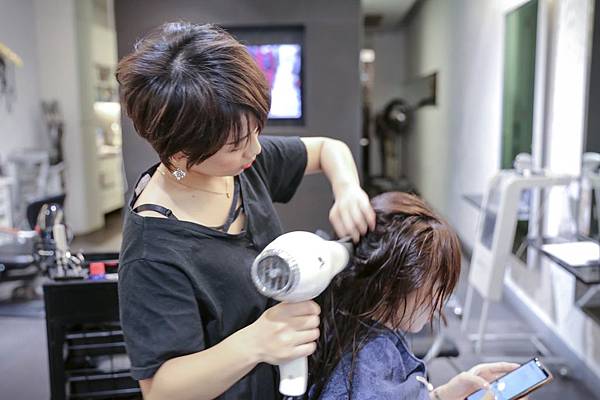 店長設計師Jenny教我吹到半乾時可以加強塗抹護髮品