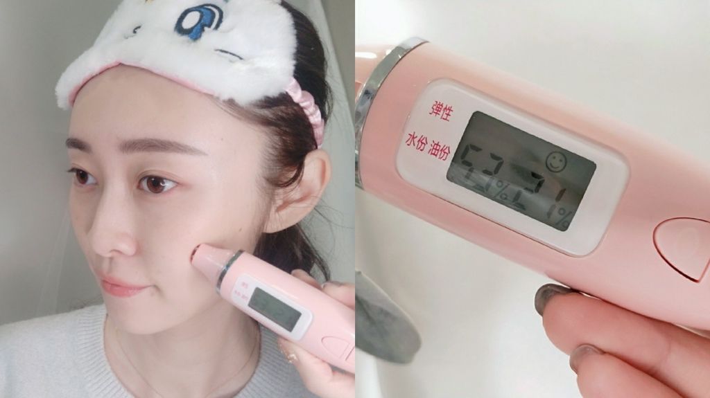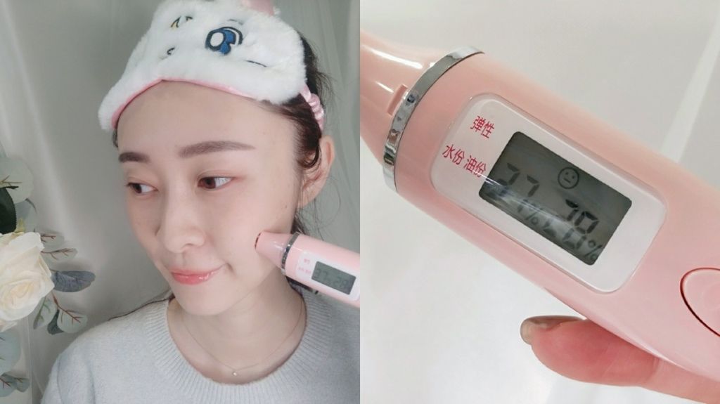洗臉後甚麼都不用來測試肌膚的飽水度37%