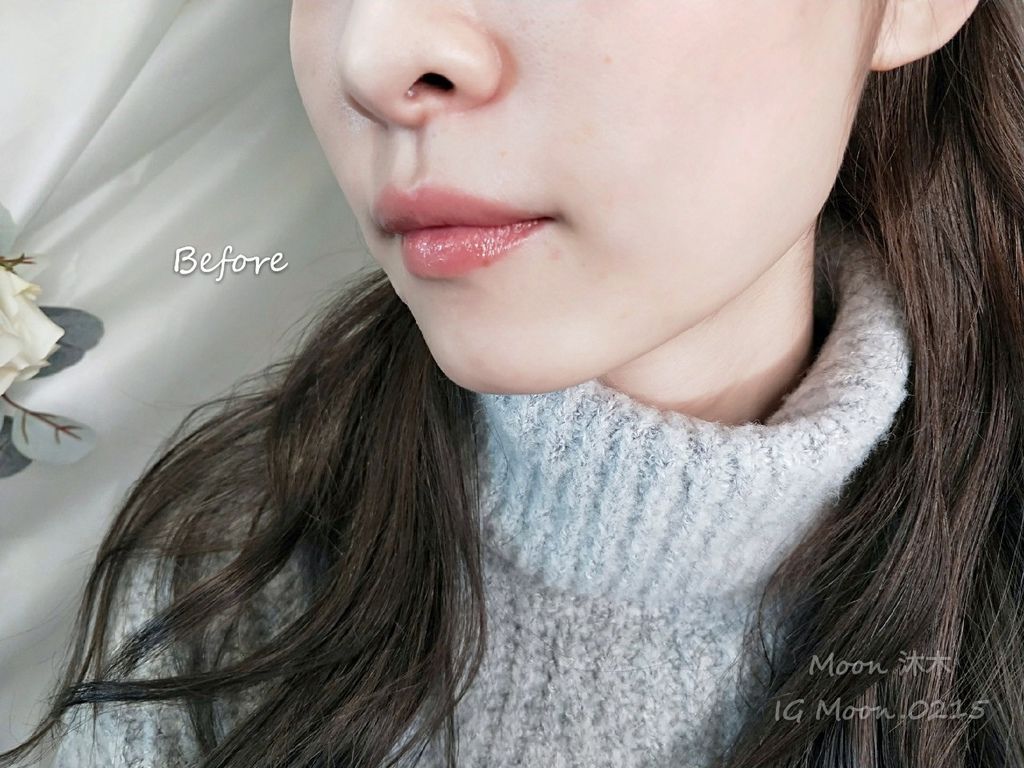 上圖是使用前右下唇角有一顆泛紅的痘印