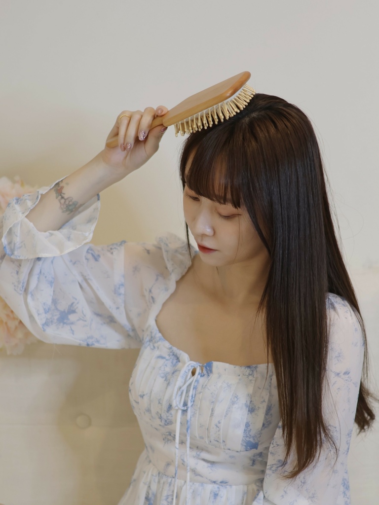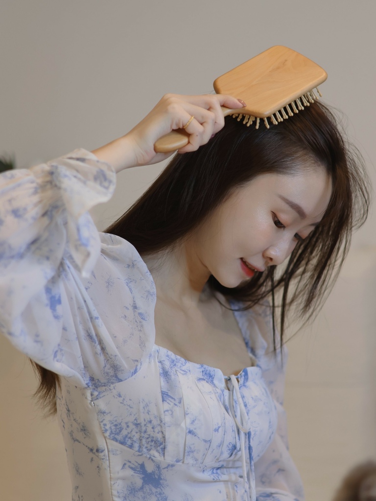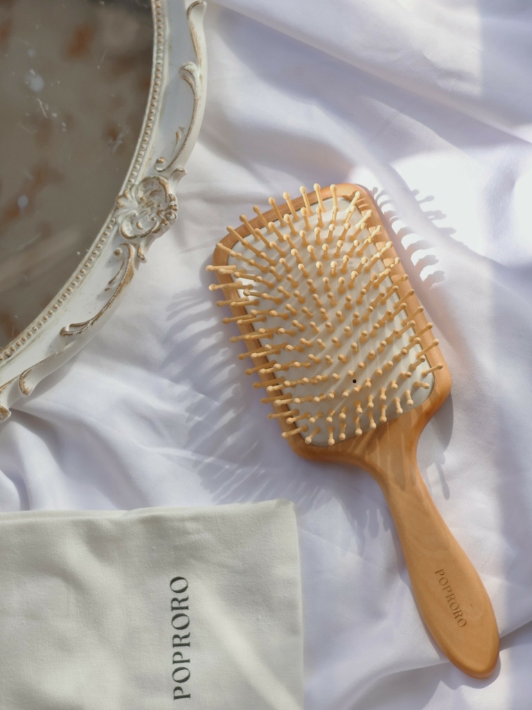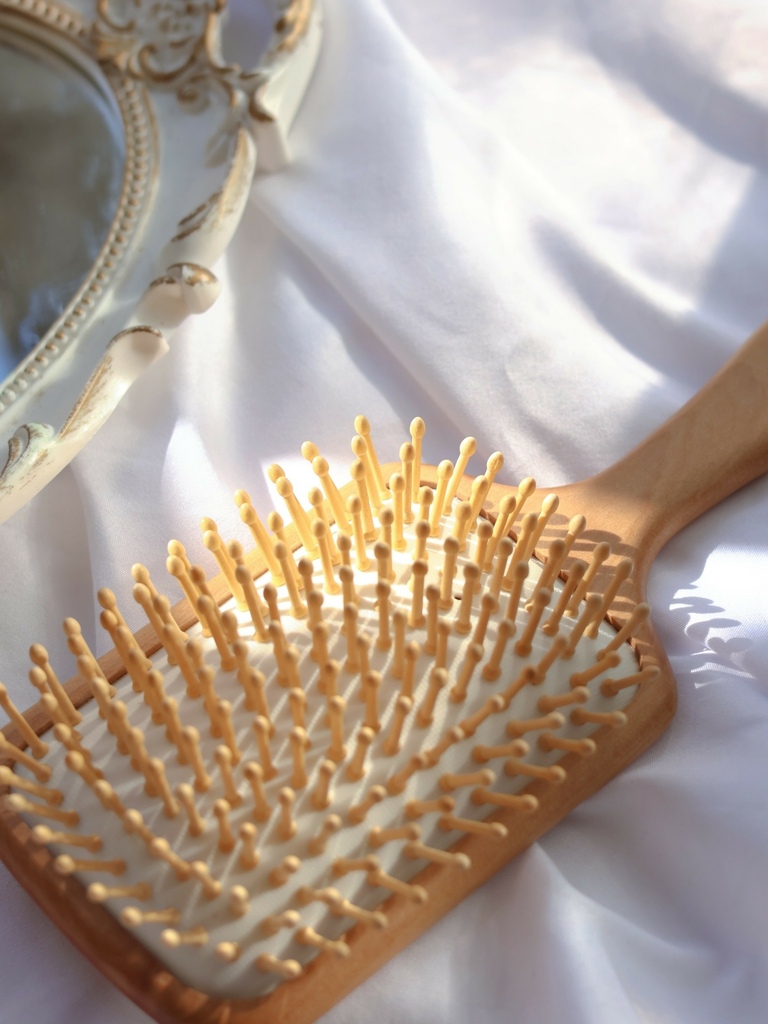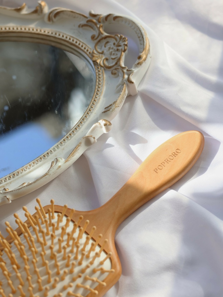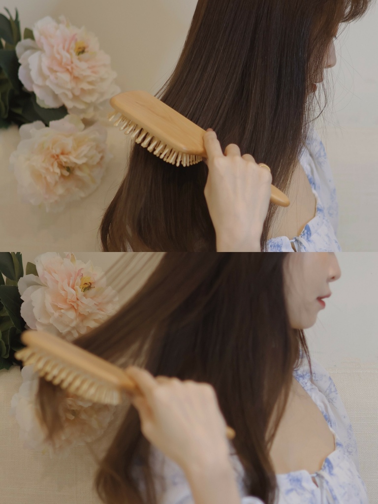使用天然禾木圓頭梳針
