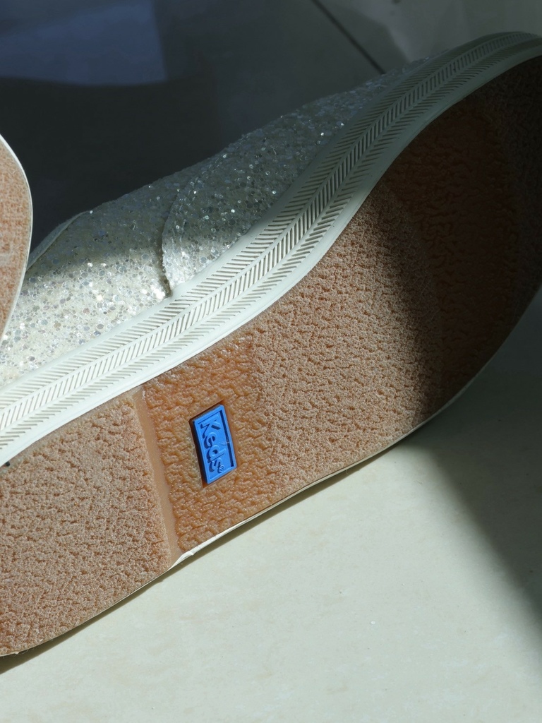 鞋子本身的亮片細節跟白洋裝的優雅氣質完美呼應