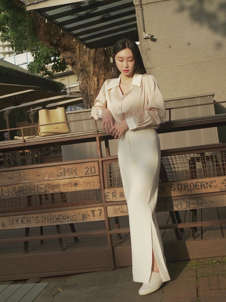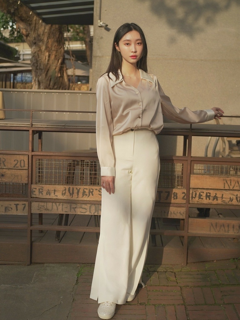 上班族風格襯衫+白長褲:從辦公室到下班小酌.一雙搞定!
