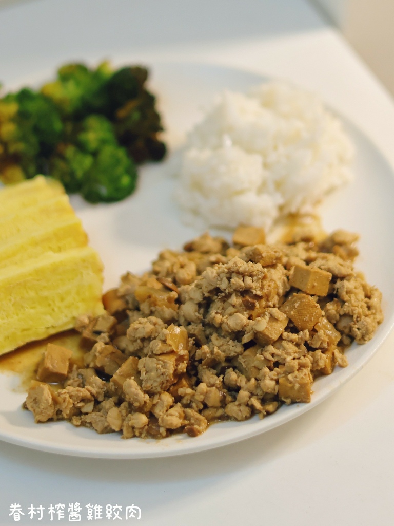 成分:雞胸肉、豆乾丁、香菇、洋蔥、甜麵醬、醬油、味霖、橄欖油。